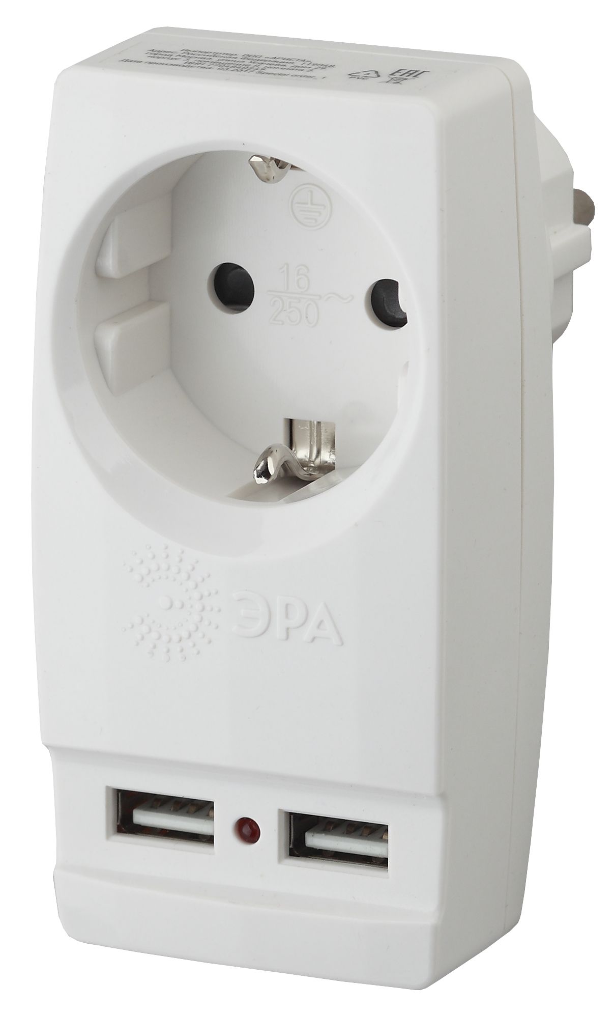 Адаптер SP-1e-USB-W бел 1гн с з/к+2USB ЭРА