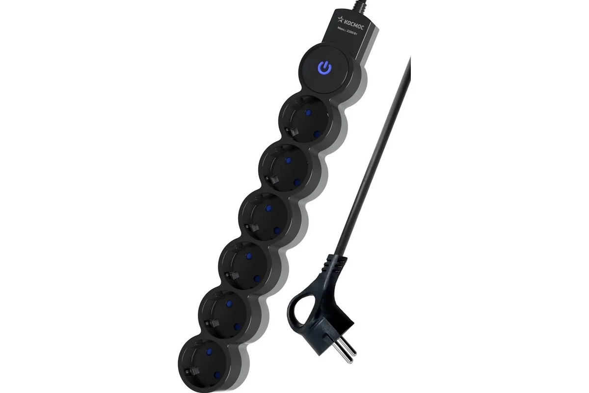 Космос удлинитель 6гн с з/к 1,5м выкл ПВС3х0,75 10А черн