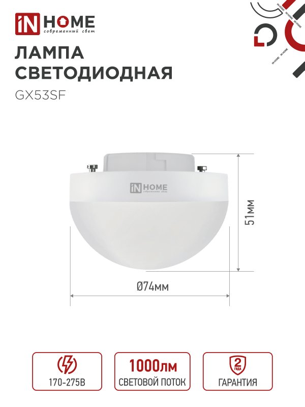 Светодиодные лампы LED-GX53SF-VC благодаря рассеивателю в форме полусферы обеспечивают равномерное распределение светового потока