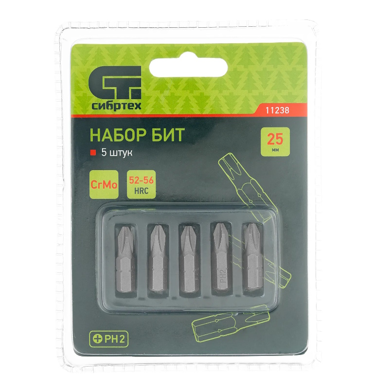 Набор бит PH2x25 5шт Сибртех 11238