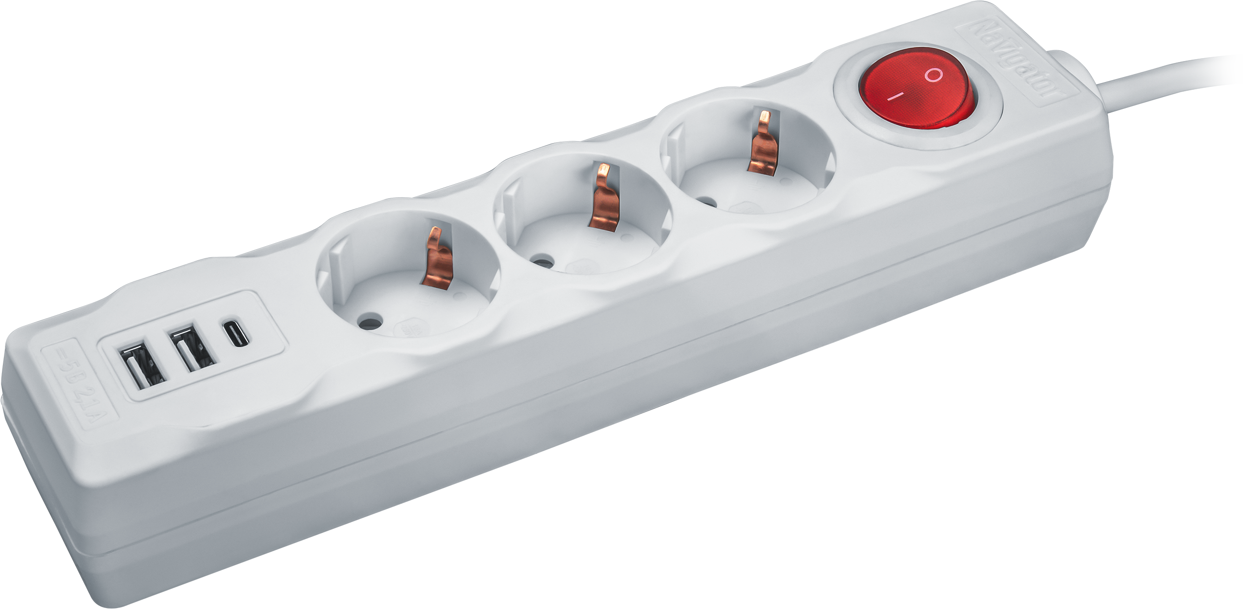 Navigator удлинитель 3гн с з/к+2хUSB выкл 1,8м ПВС3х1 61455