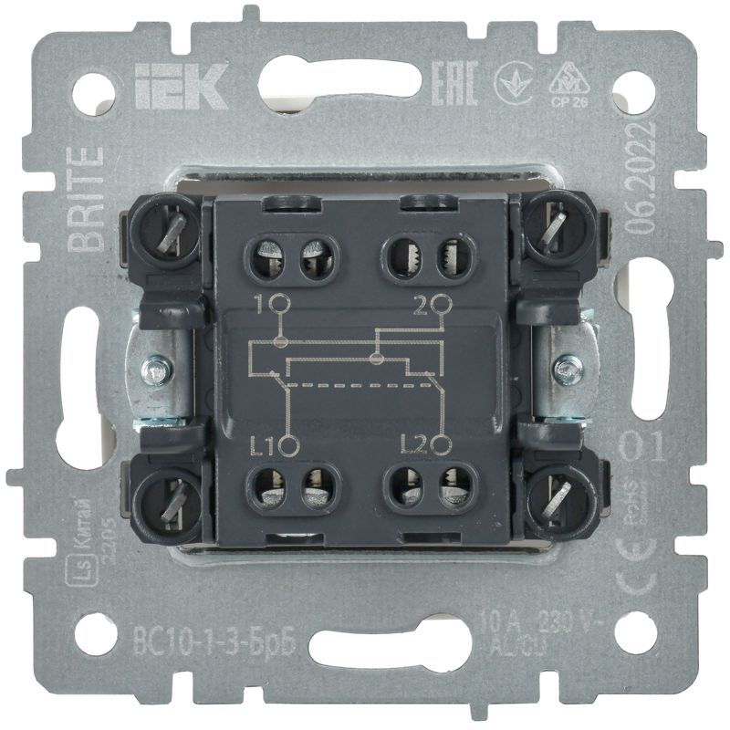 Переключатель перекрестн 1кл 10А мех-м бел BRITE BR-V13-0-10-K01