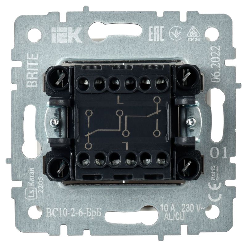 Переключатель проходн 2кл 10А мех-зм бел BRITE BR-V22-0-10-K01