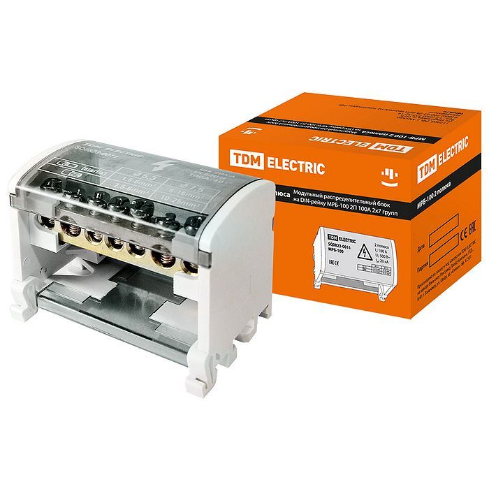 Модульный распределительный блок на DIN-рейку МРБ-100 2П 100А 2х7 групп TDM