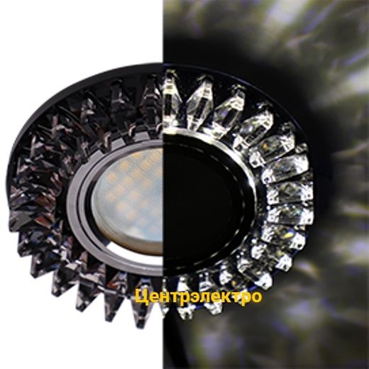 SX16RCEFB Ecola MR16 GU5.3 Glass Стекло Круг с прозр стразами Гребенка с подсветк фон черн/центр час