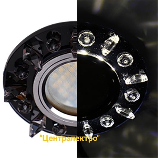 SX16RNEFB Ecola MR16 GU5.3 Glass Стекло Круг с квадр прозр стразами с подсветк фон черн/центр часть