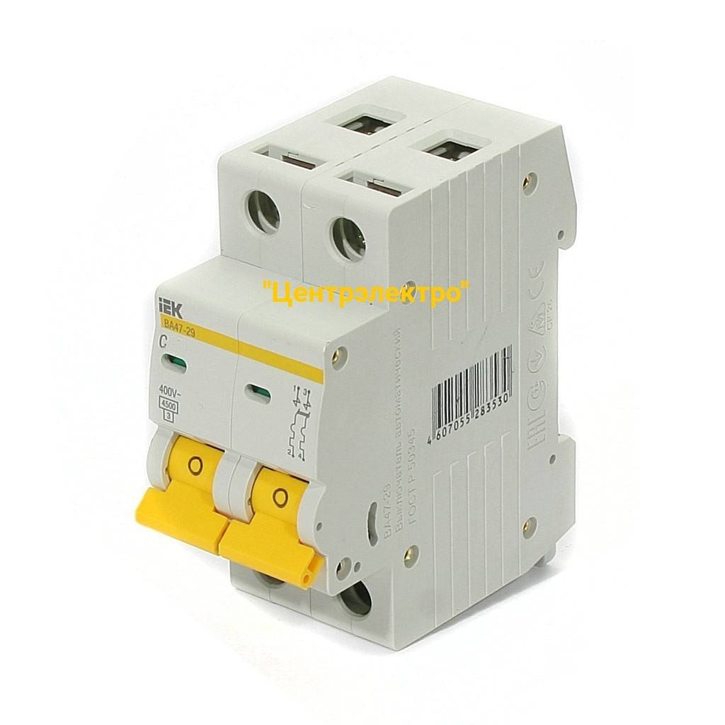 Номинальный ток: 25А. Количество силовых полюсов: 2. Характеристика эл.магнитного расцепителя: D.