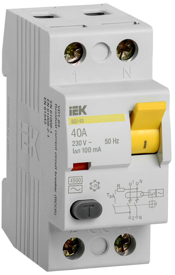 Выключатель дифференциальный (УЗО) ВД1-63 2Р 40А 100мА IEK